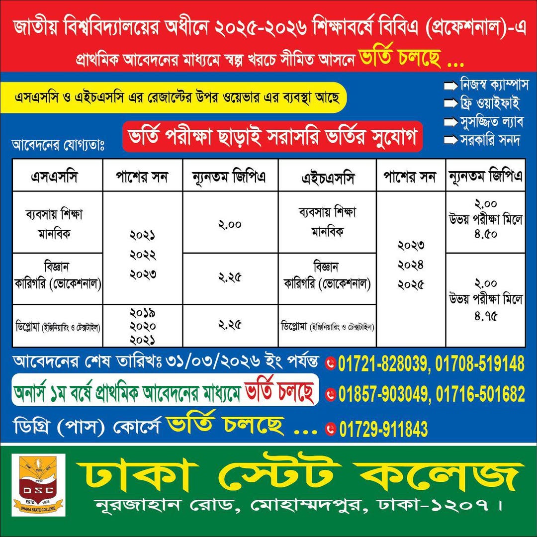 বিবিএ প্রফেশনাল এ ২৫-২৬ শিক্ষাবর্ষে ভর্তি চলছে